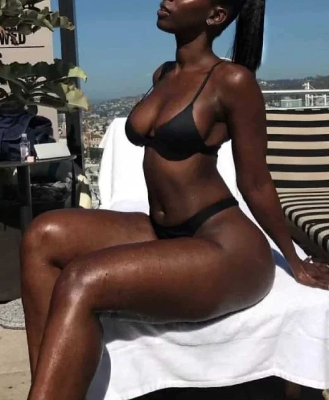 Ренди — эффектная, роскошная девушка с глубоким тёмным тоном кожи, который сияет на солнце и подчёркивает каждую линию её тела. Её фигура — высокая, стройная, атлетичная, с длинными ногами и природной грацией. Это тот тип девушки, чья уверенность чувствуется без слов: плавные движения, расслабленная поза и женственная подача создают сильный визуальный образ.